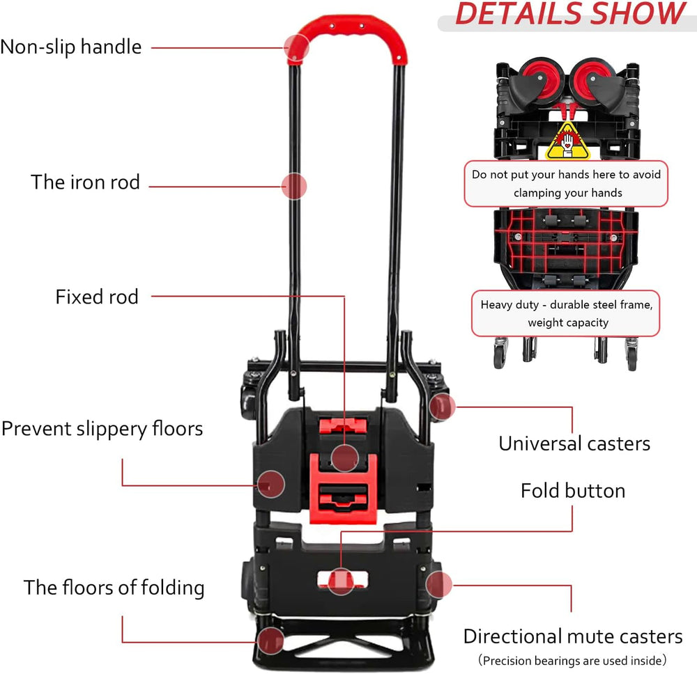 Carretilla Plegable, Marca XYZ, Ruedas de Goma, 264lbs Capacidad