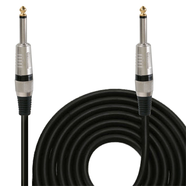 CONEXIÓN DE ¼” A ¼”: Este cable de guitarra es atible con la conexión de audio jack mono de ¼” a jack mono de ¼” y es capaz de transportar alta corrie lo que lo hace perfecto para amplificadores potentes LONGITUD DEL CABLE DE 15 PIES: este cable de altavoz profesional negro de 15 pies de Pyle Pro le brinda suficiente espacio para moverse para actuaciones enérgicas en el escenario y aún así brinda la mejor entrega de audio CALIBRE 12: este cable de calibre 12 garantiza la claridad de la señal y la integridad del sonido con una pérdida de señal mínima en distancias más largas. SONIDO DE ALTA CALIDAD: No hay necesidad de preocuparse por el sonido interrump la estática o la pérdida de calidad durante un concierto importante porque este cable de altavoz está fabricado con una construcción muy duradera y ofrece un rendimiento superior sin ru estática ni zumbidos. Una conexión macho de 1 4" a macho de 1 4" Forro de cable negro 15 pies de largo