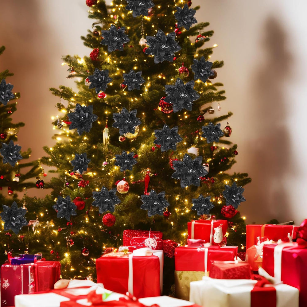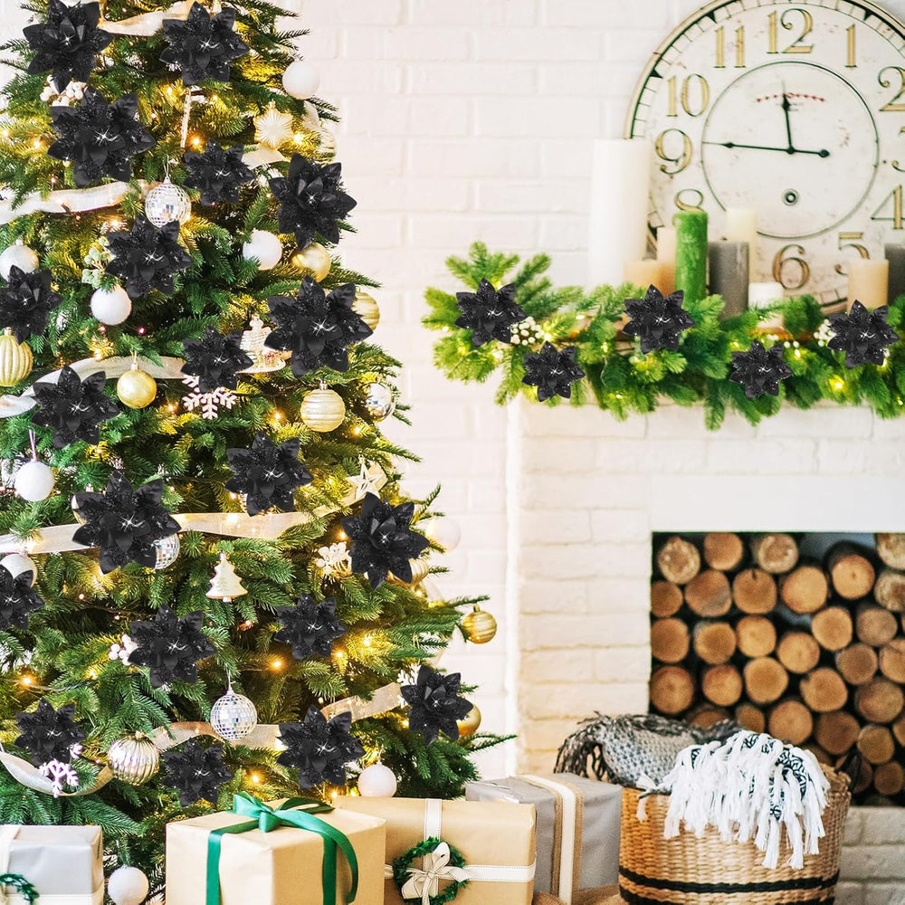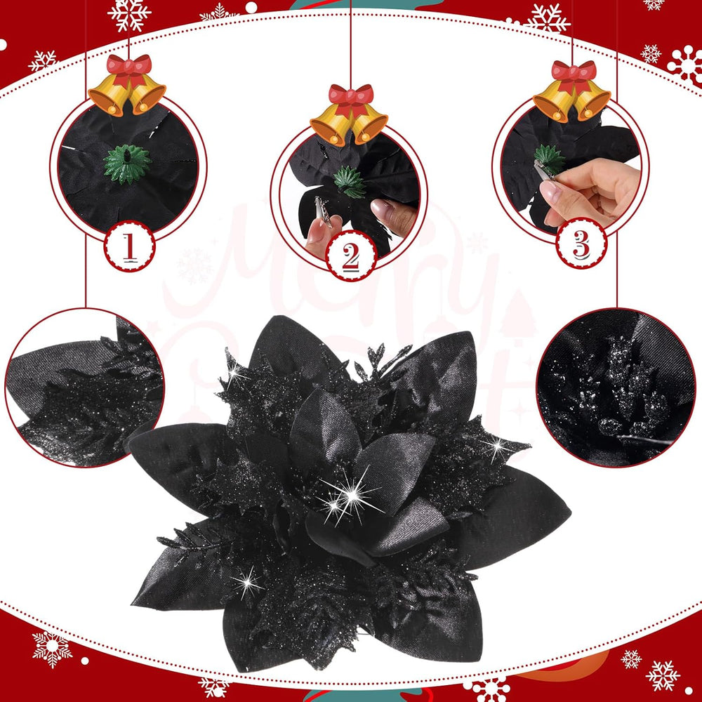 36 Piezas Flores Poinsettia Artificiales Navidad Clips 6/4/3 Pulgadas