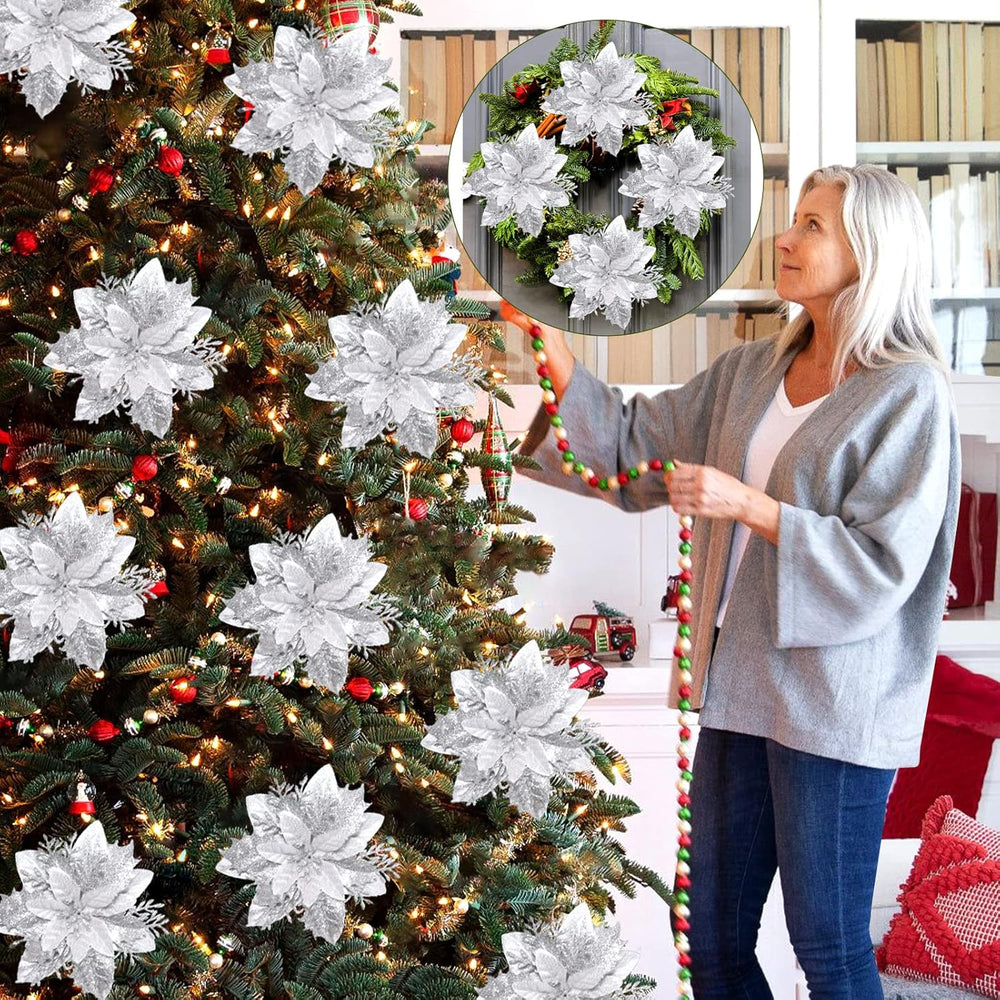 Flores Artificiales Poinsettia, Decoración Navideña, 15 Pcs
