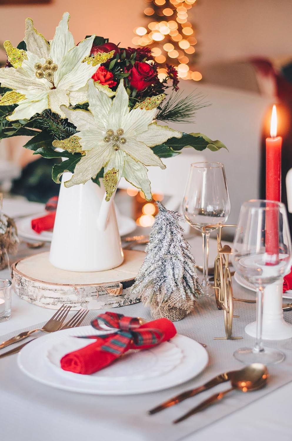 Flores Poinsettia Artificial Briful 12'' Set de 4 para Decorar
