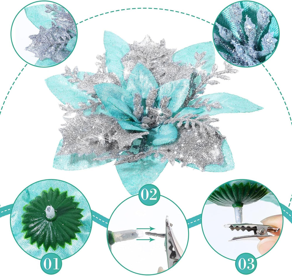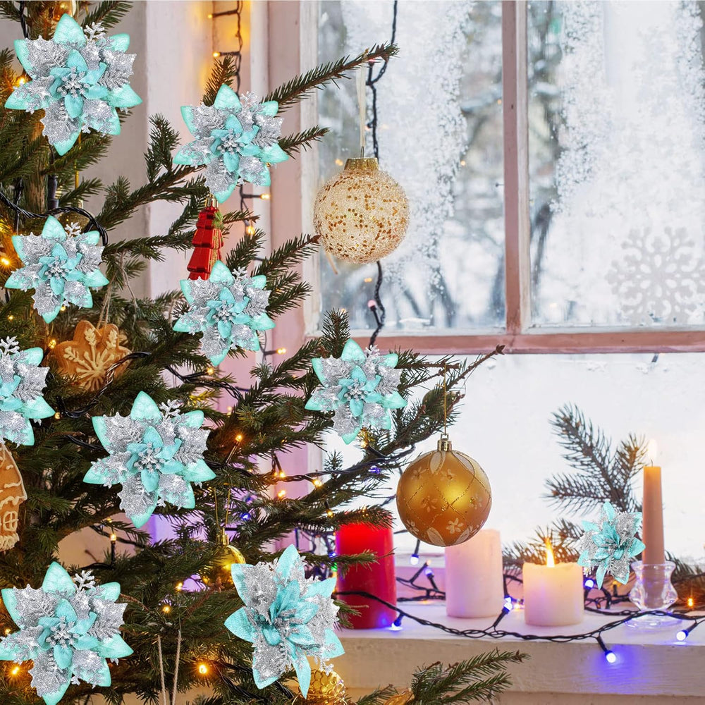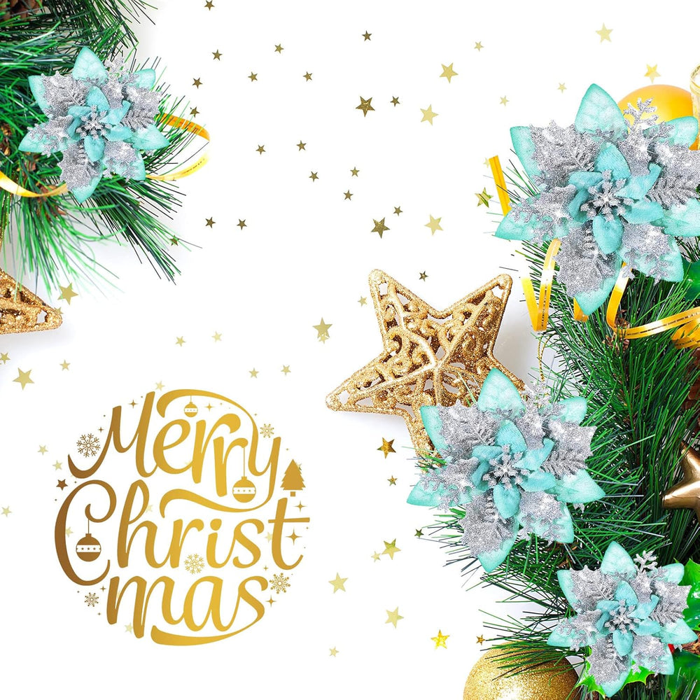 Flores Poinsettia Artificiales 36 Pcs, Decoración Navidad, 6-4-3 Pulgadas