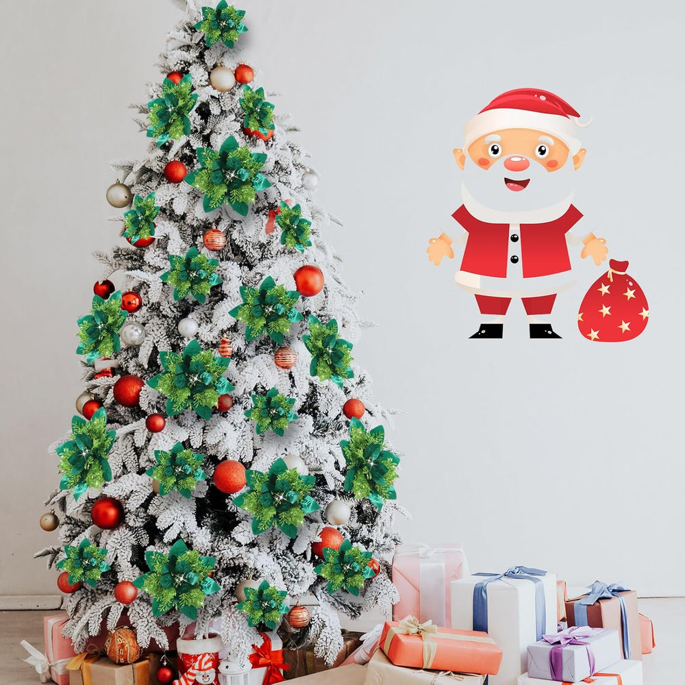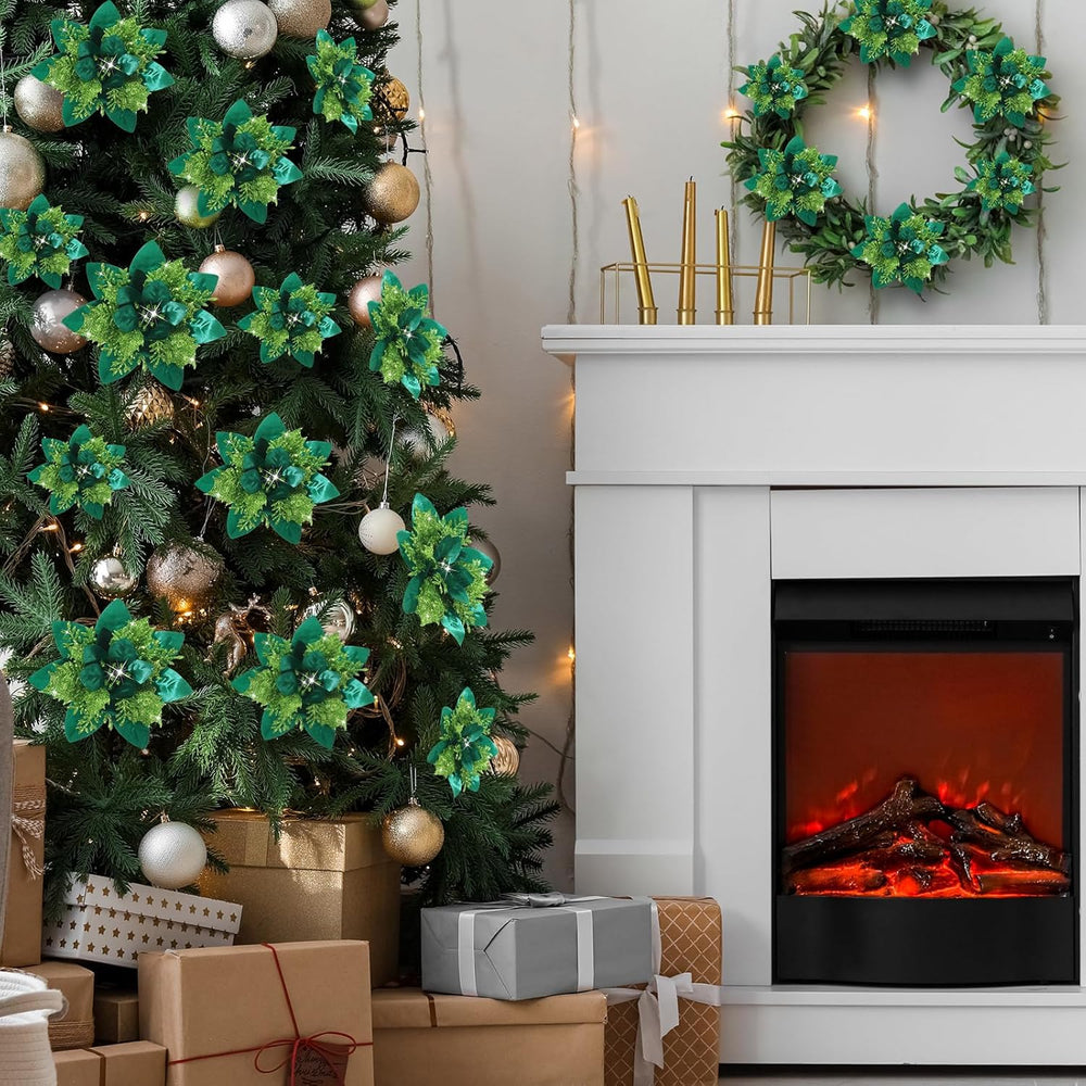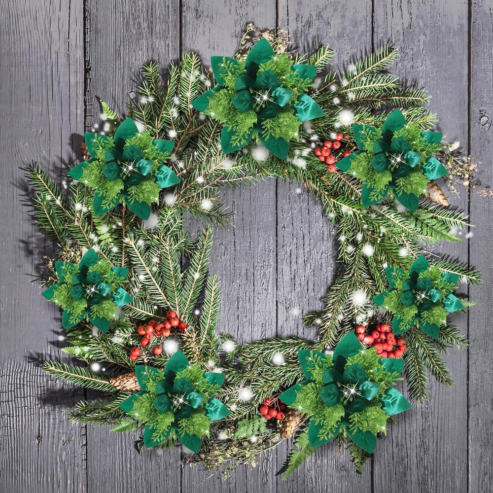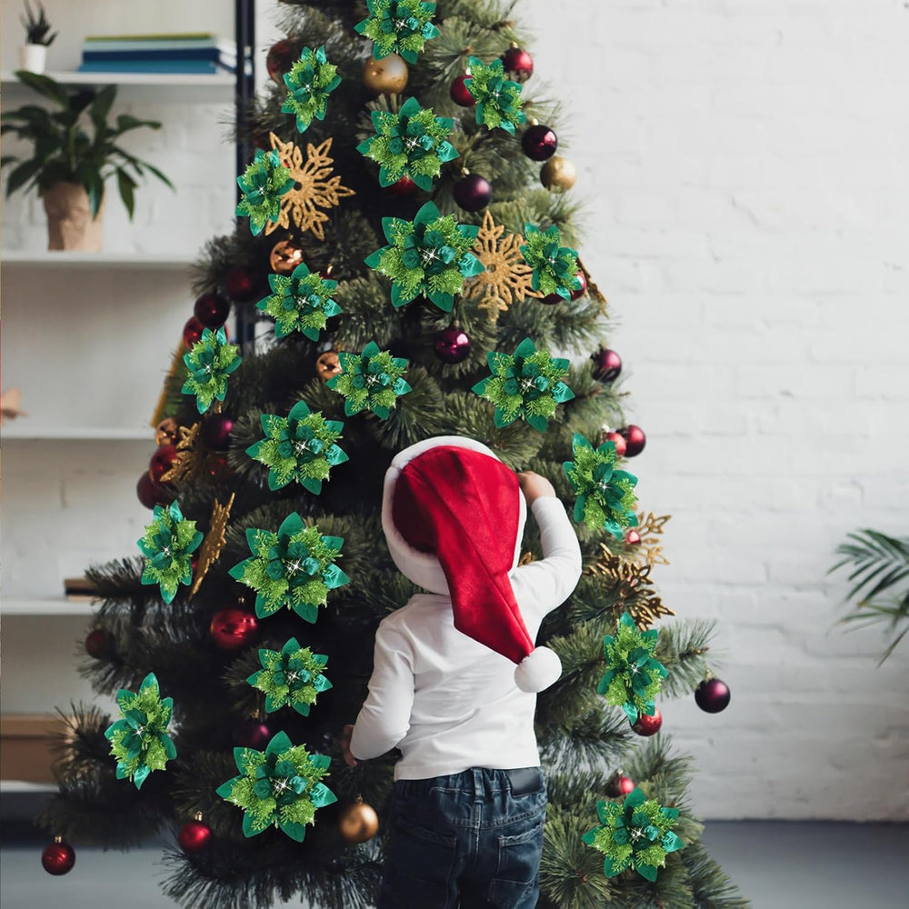 Flores Poinsettia Artificiales Glitter para Navidad, 36 Pcs