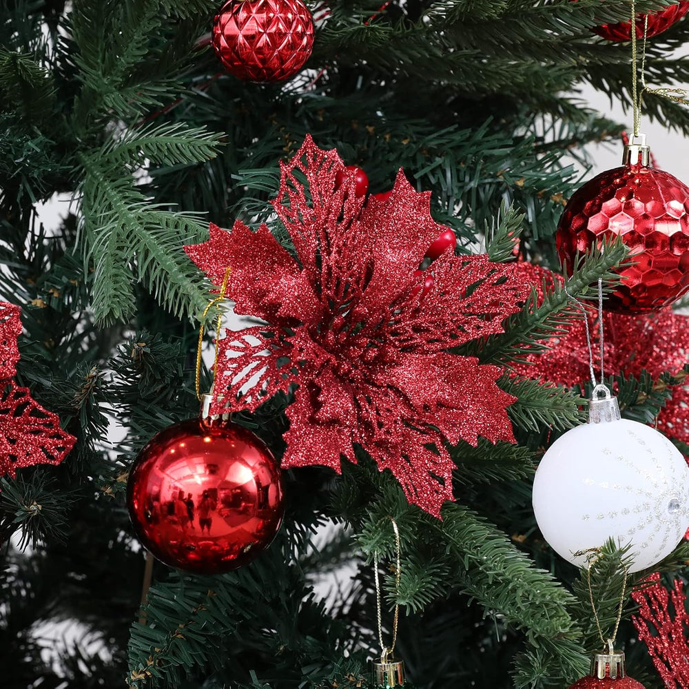 Flores Poinsettia Artificiales Wironlst - 16 Pcs Decoración Navideña