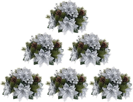 Flores Navideñas Artificiales BLOSMON 6 Pcs Poinsettias Glitter