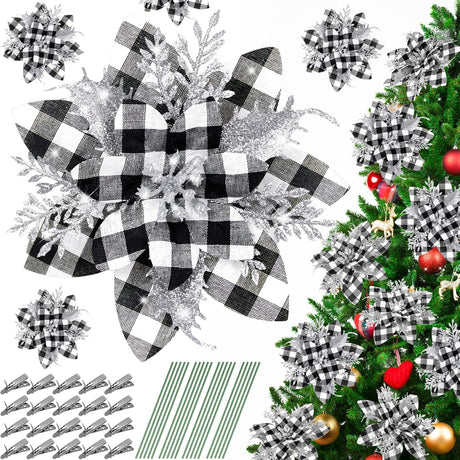 Flores Artificiales Poinsettia para Árbol de Navidad, Set 4