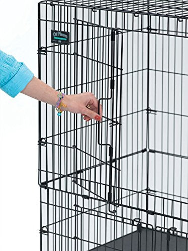 *** Características *** DIVERSIÓN Y SEGURIDAD | Cat Playpen ofrece un área de reunión grande para tu gato | La jaula para gatos mide 36L x 23.5W x 50.50H pulgadas y es ideal para 1 a 3 gatos Cat Playpen incluye una cama para gatos GRATUITA, una bandeja de plástico a prueba de fugas fácil de quitar, 3 plataformas de descanso para gatos ajustables y 4 ruedas con ruedas de bloqueo para un fácil posicionamiento en su casa FÁCIL ACCESO Y LIMPIEZA | Dos grandes puertas frontales tipo gab e (superior e inferior) con pestillos de puerta seguros brindan fácil acceso a su gato y mantenimiento de la caja de arena para gatos, bandeja de plástico deslizable para la limpieza CONSTRUIDO PARA DURAR | Cat Playpen está hecho con alambre de metal resistente con un acabado negro E-coat para evitar la oxidación | El calibre del cable incluye 3, 5, 12 w / 1W x 5.5 pulgadas de espacio entre cables, pesa 40 lbs. cuando se ensambla
