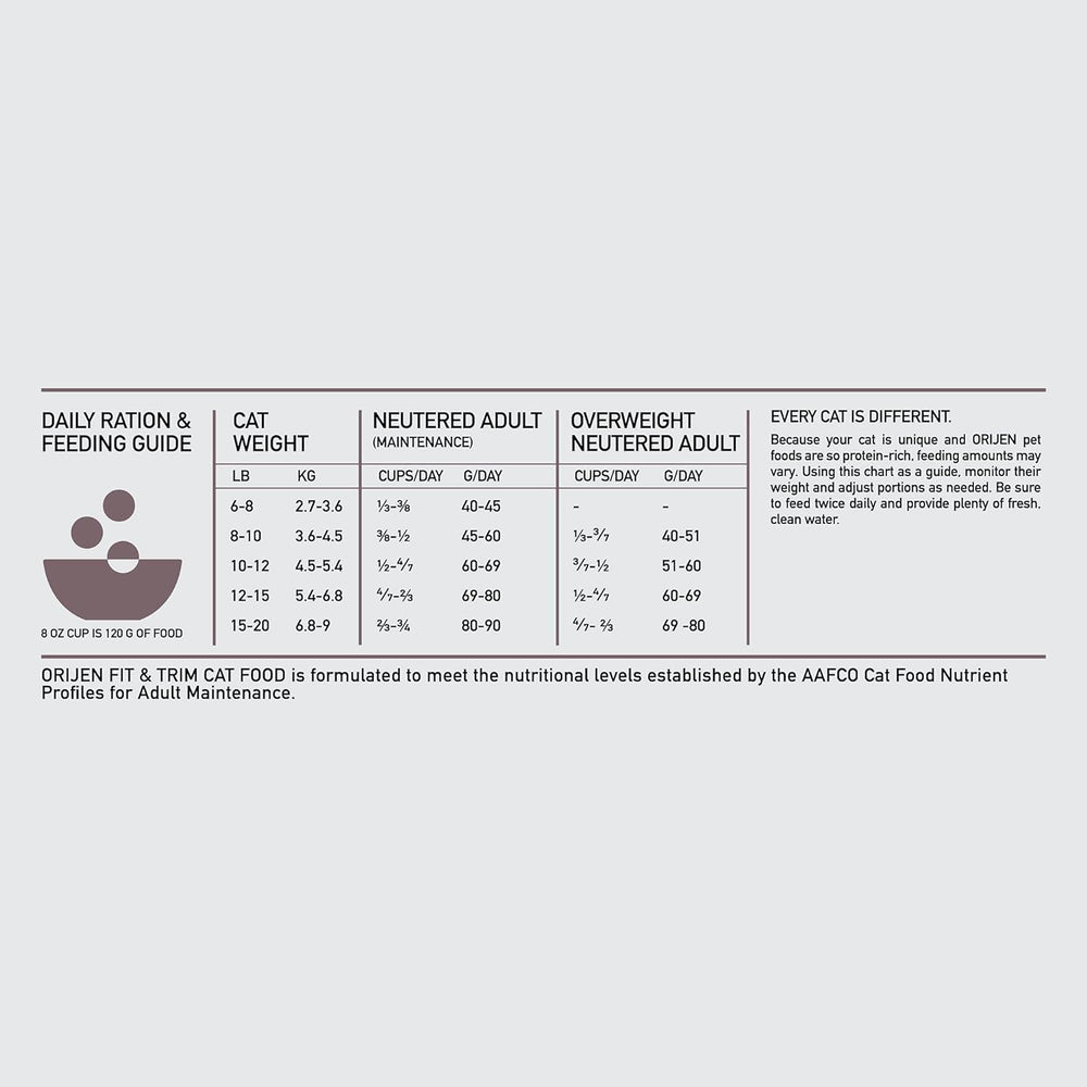 ORIJEN Fit and Trim - Alimento seco para gatos, sin granos, para gatos adultos, con ingredientes de presas integrales, 4 libras