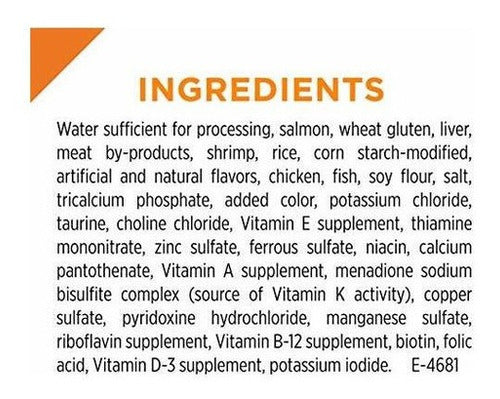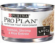 Veinticuatro (24) 3-ounce latas de camarón Purina Pro Plan salmón y arroz para entrada Hecho con verdadero salmón y camarones, acentuado con arroz para excepcional sabor Rico en ácidos grasos omega para la piel sana y chamarra Niveles óptimos de proteínas y grasa ayudar a promover Condición corporal ideal Ofrece una nutrición equilibrada para ayudar a apoyar un sistema inmune fuerte