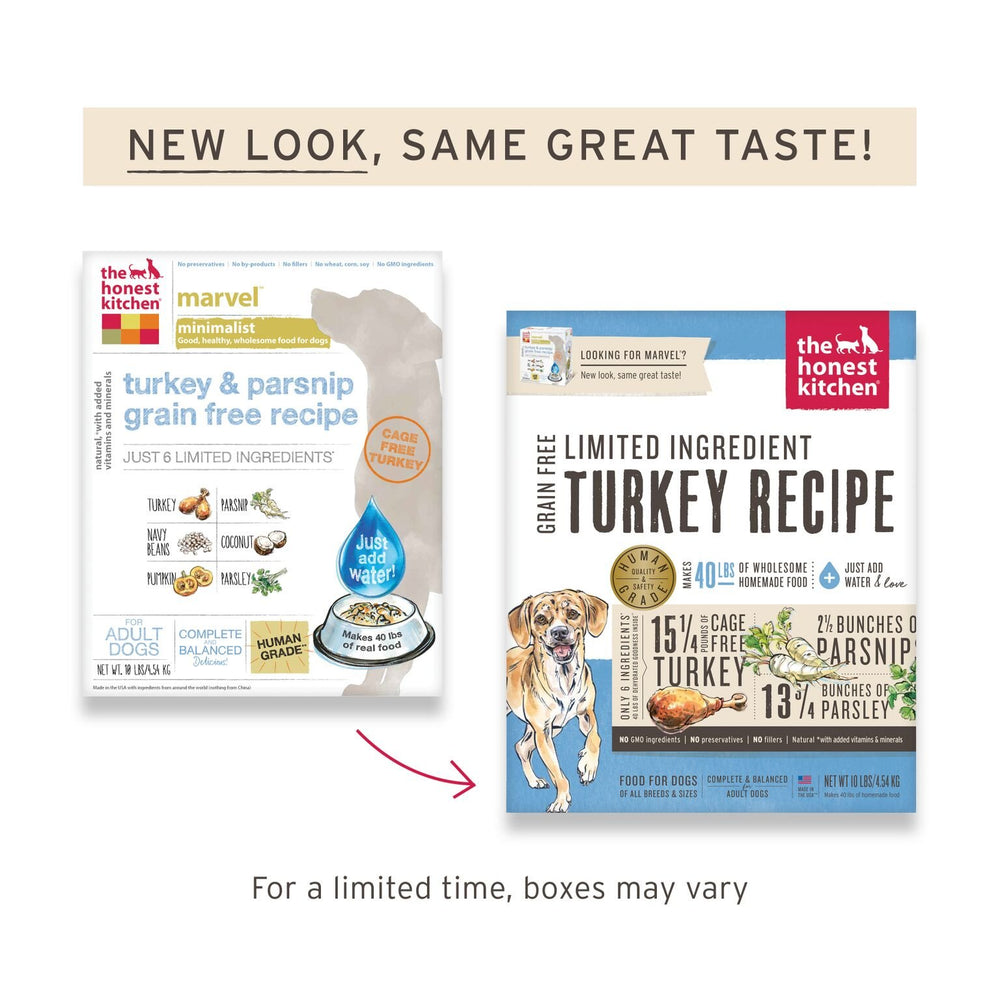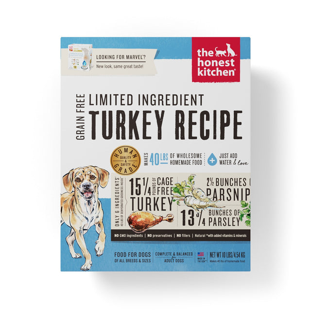 *** Características *** * Alimento para perros de ingredientes limitados SIN GRANO hecho con pavo sin jaula y deshidratado para una nutrición máxima para perros adultos y adultos mayores * INGREDIENTE LIMITADO Receta minimalista de pavo y chirivía sin granos, sin jaula, diseñada para perros con sensibilidades alimentarias * DESHIDRATADO hecho con SEIS ingredientes naturales y sin granos, solo agregue agua para una comida cálida y deliciosa * TODO alimento para perros NATURAL sin subproductos, conservantes o ingredientes OGM * HECHO EN LOS EE. UU .: Todos los ingredientes se procesan en los EE. UU. En una instalación de procesamiento de alimentos de grado humano Una comida minimalista para perros que es fácil para el tracto digestivo y las papilas gustativas de tu cachorro, Marvel es, bueno, una maravilla. Con solo seis ingredientes sin granos, incluido el pavo sin jaula y los nuevos frijoles blancos, cada taza entera de grado humano es perfecta para perros con docenas de sensibilidades alimentarias. Una comida minimalista para perros que es fácil para el tracto digestivo y las papilas gustativas de tu cachorro, Marvel es, bueno, una maravilla. Con solo seis ingredientes sin granos, incluido el pavo sin jaula y los nuevos frijoles blancos, cada taza entera de grado humano es perfecta para perros con docenas de sensibilidades alimentarias. Honest Kitchen Marvel es un alimento para perros deshidratado que es AAFCO completo y equilibrado para adultos y perros mayores con calorías y proteínas moderadas. Es un alimento para perros de ingredientes limitados con solo SEIS ingredientes, ideal para cachorros con alergias alimentarias o que solo necesitan una dieta simplificada. Honest Kitchen Marvel es un alimento para perros deshidratado que es AAFCO completo y equilibrado para adultos y perros mayores con calorías y proteínas moderadas. Es un alimento para perros de ingredientes limitados con solo SEIS ingredientes, ideal para cachorros con alergias alimentarias o que solo necesitan una dieta simplificada. Esta comida para perros es 100% comida para perros de grado humano (¡una distinción de calidad importante!) Y no contiene ingredientes de alimentos para mascotas de bandera roja como el maíz, la soja, el arroz, la pulpa de remolacha o el trigo. ¡Solo agregue agua tibia, espere 3 minutos y sirva una comida deliciosa y saludable! The Honest Kitchen comenzó en la cocina de Lucy Postin en 2002 cuando comenzó a preparar las comidas de su perro desde cero para ayudar a combatir sus infecciones de oído. La diferencia física de su nueva dieta era espectacular, pero su cocina era un desastre. . Luego, Lucy se dio cuenta de que deshidratar los alimentos integrales hacía que las comidas fueran mucho más sencillas, al tiempo que mantenía los beneficios naturales para la salud de los ingredientes. A partir de ahí, nació The Honest Kitchen, ¡y su cocina se mantuvo mucho más limpia! Hoy, The Honest Kitchen está en una misión para revolucionar la industria de alimentos para mascotas a través de su obsesión con la integridad del producto y el compromiso de ayudar a la mayor cantidad de mascotas posible en el camino hacia la buena salud a través de alimentos naturales y saludables.