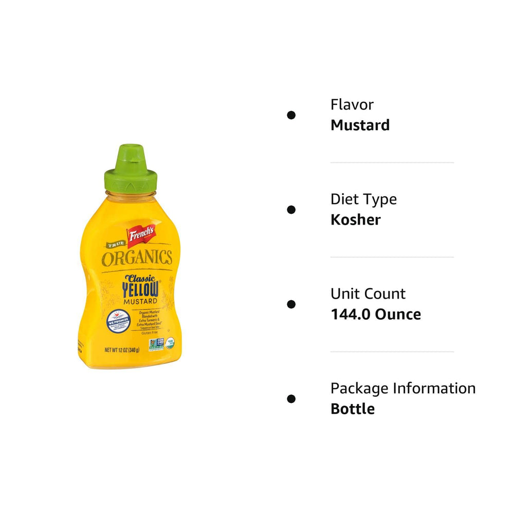 French's True Organics Classic - Mostaza amarilla, 12 onzas (paquete de 12)