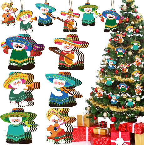 Adornos de Madera Mexicanos, Feliz Navidad, 24 Piezas, 6 Estilos