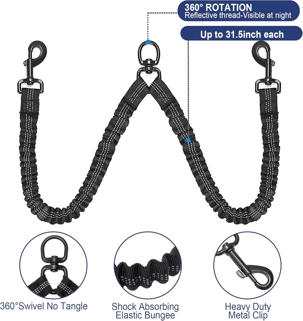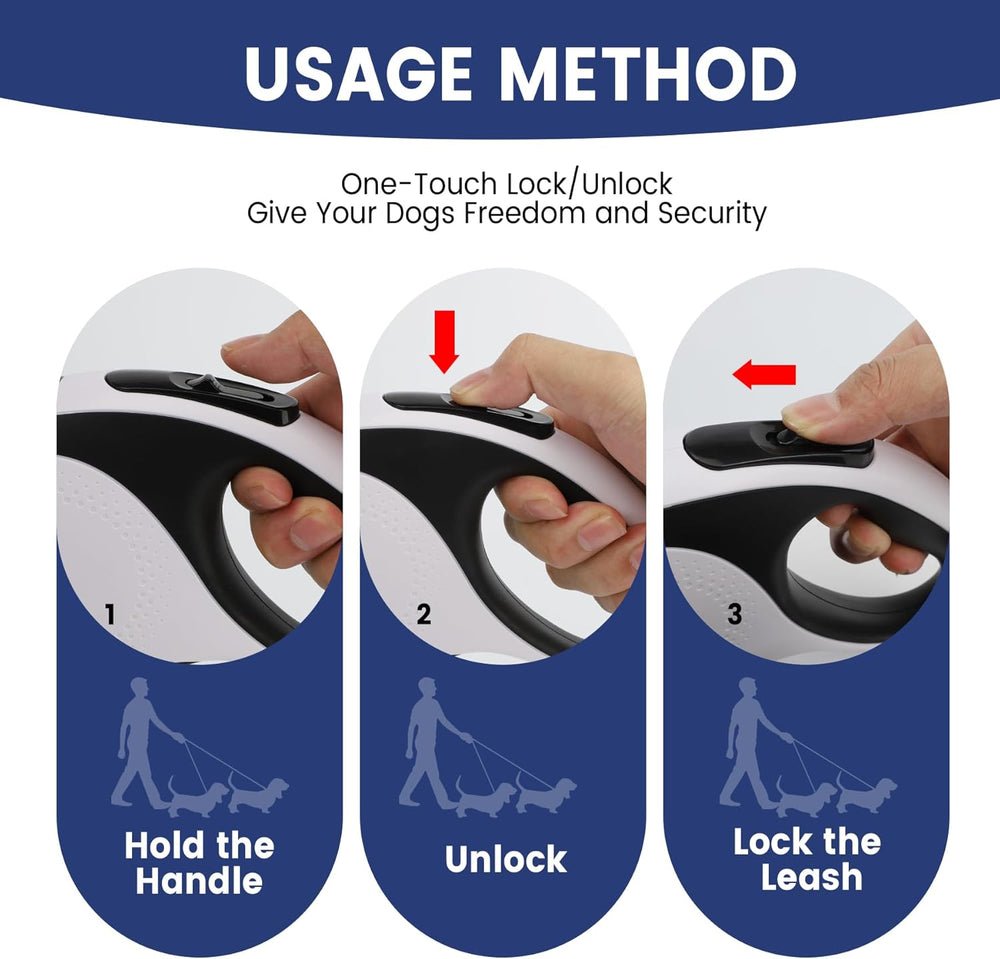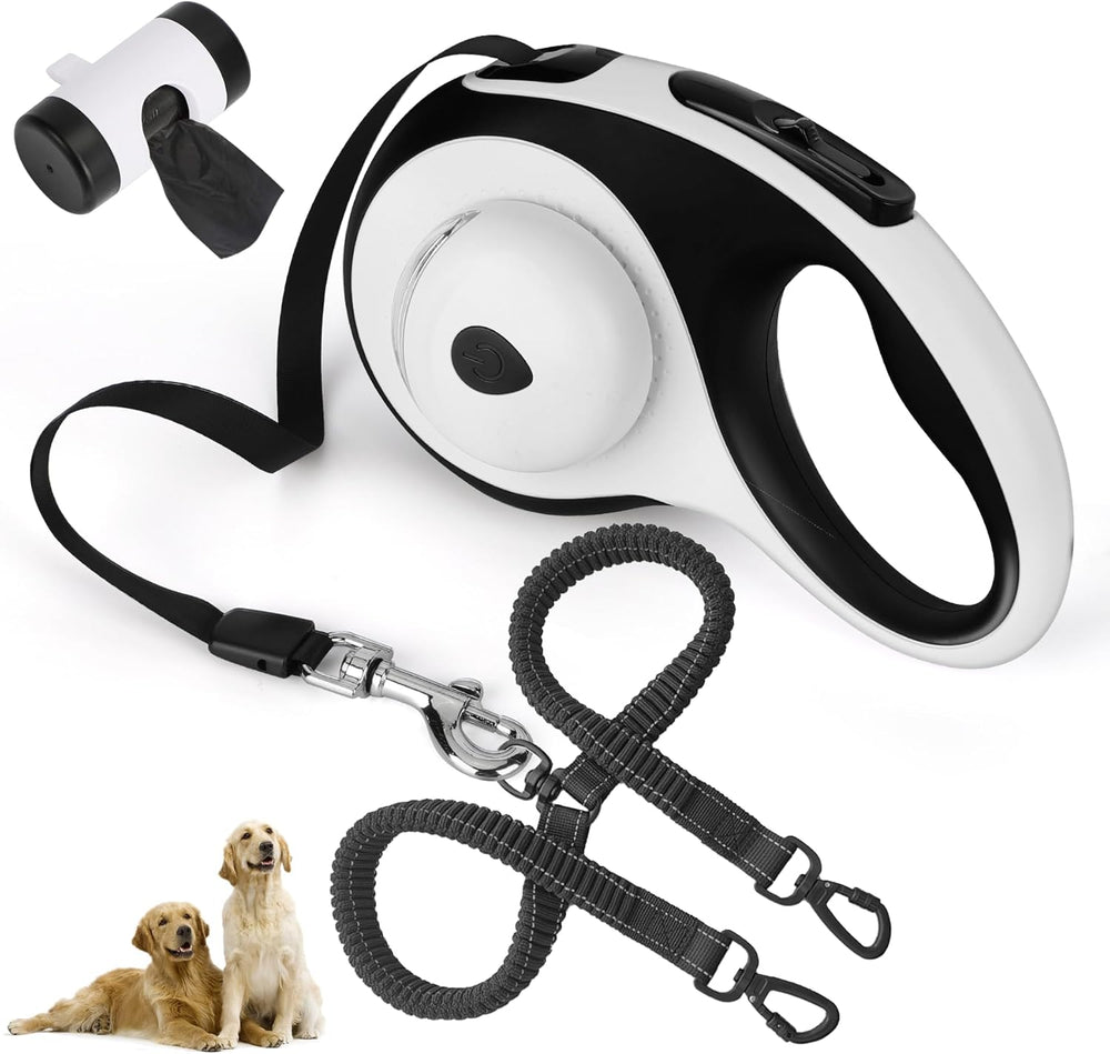 Correa Retráctil Doble para 2 Perros Grandes con Luz LED