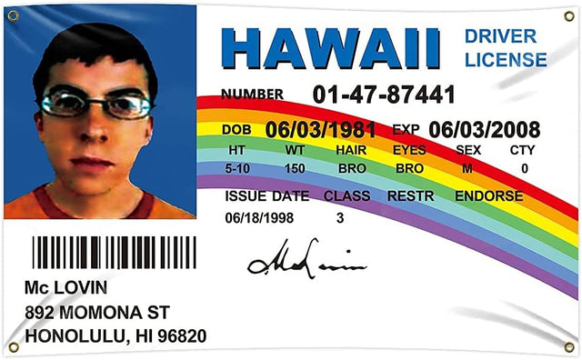 Bandera 3x5 Ft Licencia Conductor McLovin para Dormitorio y Exteriores