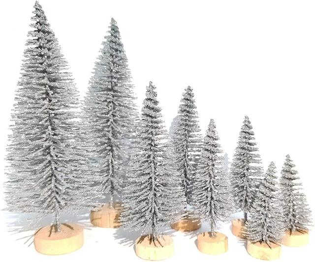 8 Pcs Árboles Navideños Artificiales Miniatura con Base de Madera