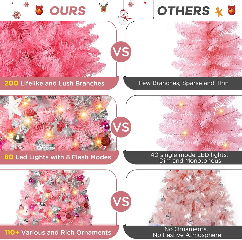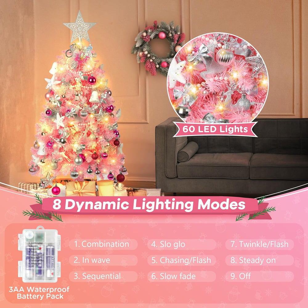 Árbol de Navidad 3FT, árbol artificial preiluminado 36 con 111 adornos