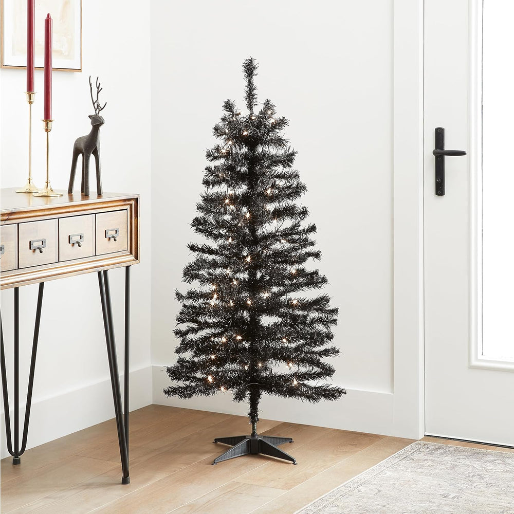 Árbol de Navidad artificial preiluminado con luces blancas, 4 ft
