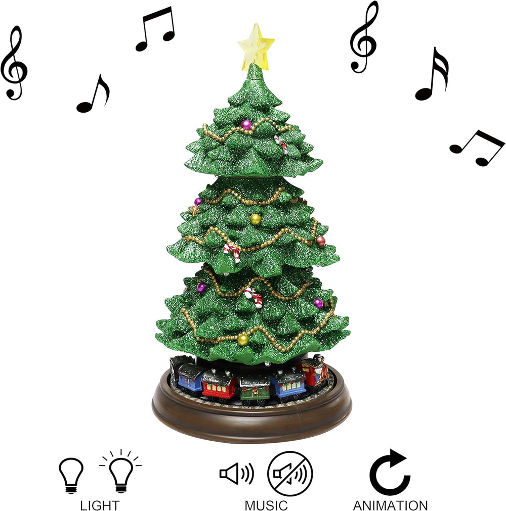 MOMENTS IN TIME Árbol de Navidad con trenes rotativos y luces