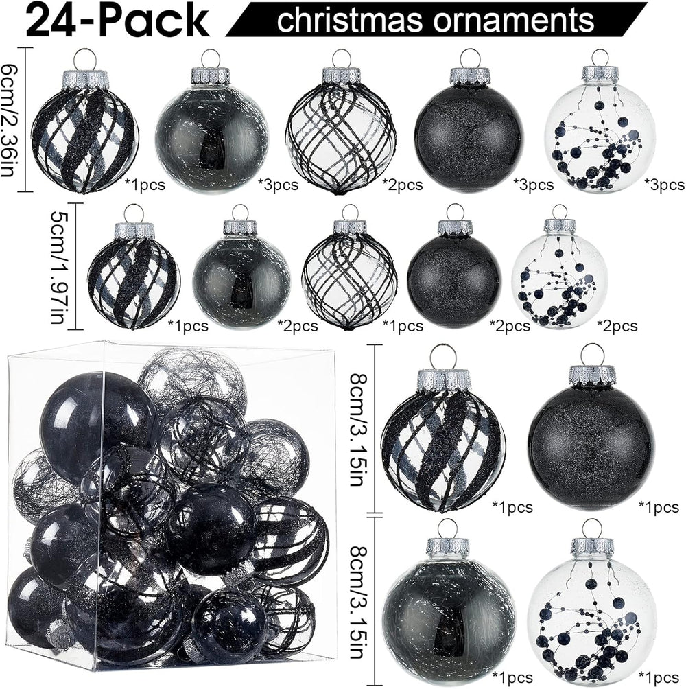 Acerca de este artí Adornos de Bolas de Navidad Negras: Estos 24 adornos de Navidad transparentes están hechos de plástico resistente y respetuoso con el medio ambiente con excelente resistencia a los golpes. Estas bolas de Navidad tienen decoraciones brillantes y una base de esmalte transpare perfectas para colgar en tu árbol de Navidad y decorar tu hogar con el esto se convertirá en parte de tus vacaciones. Combinaciones de 3 tamaños y 5 estilos: En nuestro set de bolas de Navi contiene 8 bolas pequeñas (1, 5 12 bolas medianas (2, 60 mm) y 4 bolas grandes (3,15 ", 80 mm). Un total de 24 adornos de bola. Diseño ún estas decoraciones de bolas de Navidad de plástico tienen un atractivo ún muy adecuado para decorar tu árbol de Navidad o tu hogar. Varios usos para adornos de Navidad: Estas decoraciones de bolas de Navidad se pueden utilizar para decorar árboles de Navi coronas olas colgadas en pare ventanas y puer entre otros usos. También puedes colocar estos adornos de bolas de Navidad en la mesa o en la pared de la estufa para decorar tu hogar. Aumenta la atmósfera festiva y divide a niños y mascotas. Gancho desmontable: Cada adorno de bola está equipado con un gancho desmontable con una cue lo que te permite colgar fácilmente todo el árbol de Navidad. Decoración DIY senci puedes colocar tu decoración favorita dentro de la bola transparente. Utiliza estas brillantes bolas de Navidad para decorar tu árbol de Navidad o tu hogar y añadir más esplendor a esta temporada navideña. Decoración perfecta para el hogar: Este será el mejor regalo para Navidad. Utiliza estas bolas de Navidad para decorar tu hogar y hacer que luzca más atractivo. Estas decoraciones irrompibles crearán una atmósfera cálida y festiva en todo el ho y esta Navidad será más plena. ? Ver más detalles del producto Información del producto Dimensiones del paquete: 8.46 x 7.17 x 6.77 pulgadas Peso del artí : 12,6 onzas Fabricante: Jorysics : 9Y37LC7J Número de modelo del artí : A01 Opiniones de lo s: 4.6 de 5 estrel con 504 valoraciones Mejor rango de ventas: número 170,680 en Hogar y Cocina (Ver los 100 mejores en Hogar y Cocina) Fecha de disponibilidad: 16 de abril de 2022 : Para obtener información sobre l de este prod .