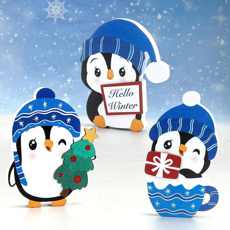 Bloques de Madera Set 3 Decoraciones Navideñas de Pingüinos