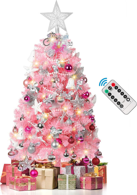 Árbol de Navidad Artificial Preiluminado, luces cálidas y de color, 4 pies
