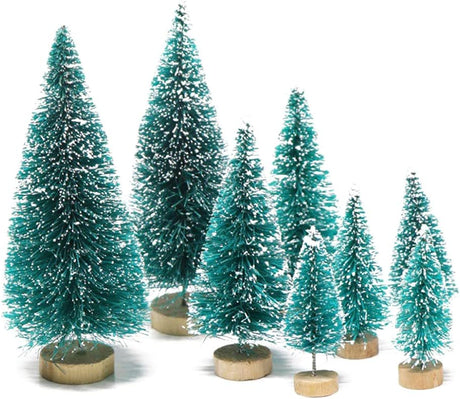 8 Pcs Árboles Navideños Artificiales Miniatura con Base de Madera