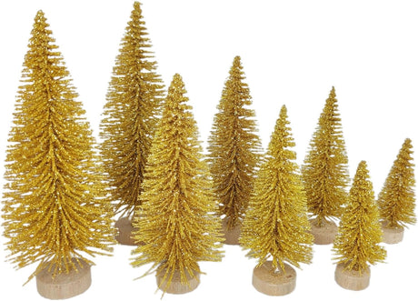 8 Pcs Árboles Navideños Artificiales con Base de Madera