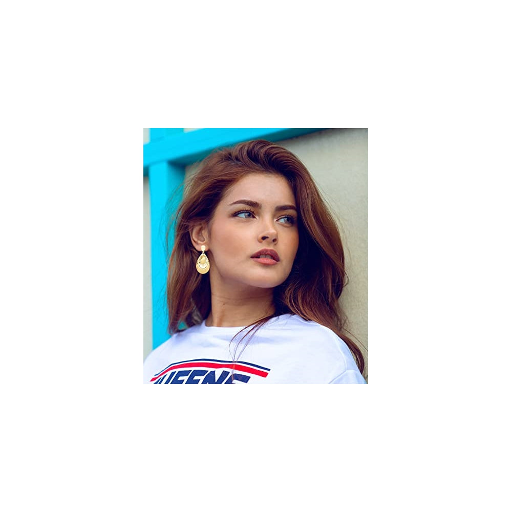Aretes geométricos de gran tamaño, de lágrima, martillados, ostentosos, con broche de metal (muchos estilos) Tipo: Broche (no perforado), chapado en oro de imitación Joyería de fantasía