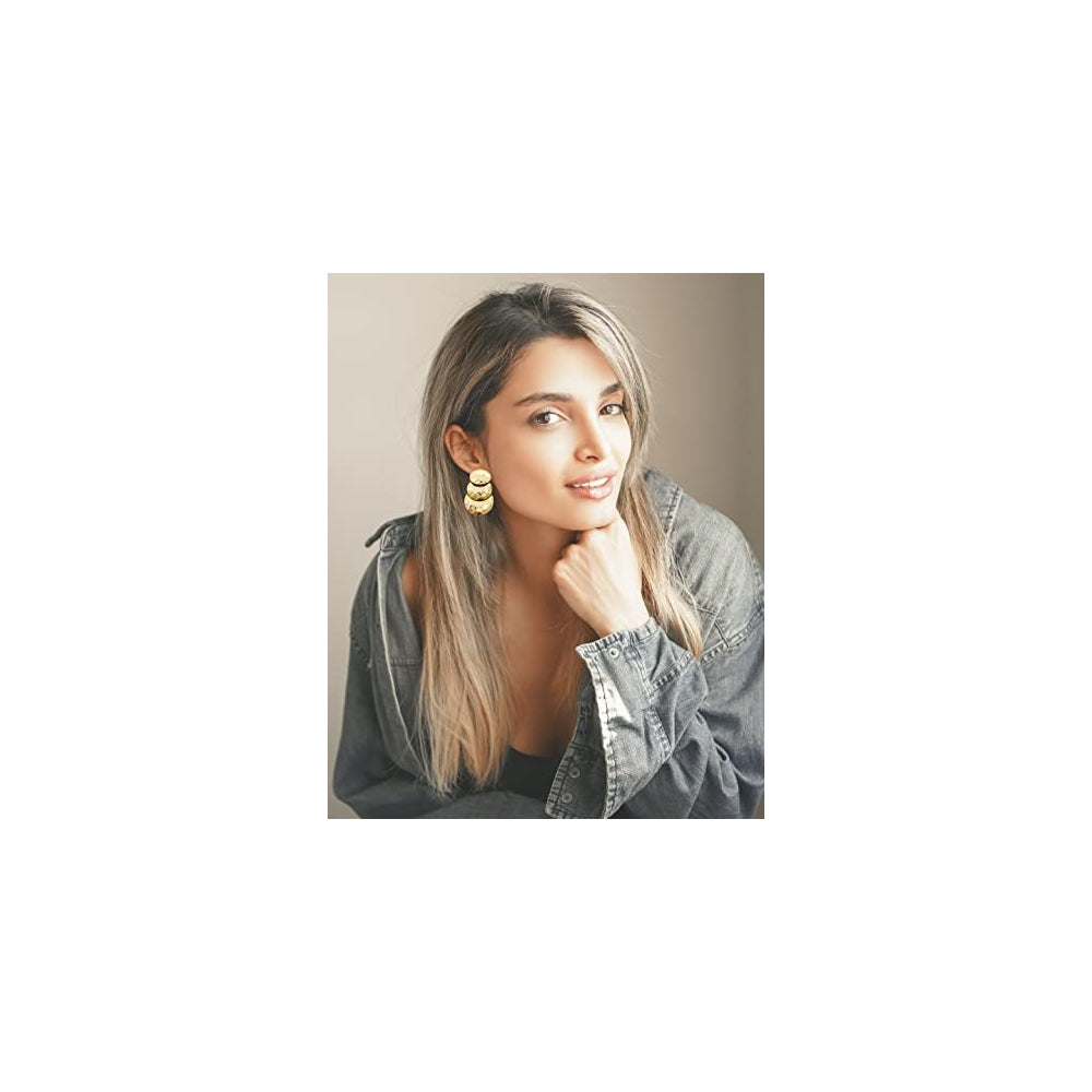 Aretes geométricos de gran tamaño, de lágrima, martillados, ostentosos, con broche de metal (muchos estilos) Tipo: Broche (no perforado), chapado en oro de imitación Joyería de fantasía