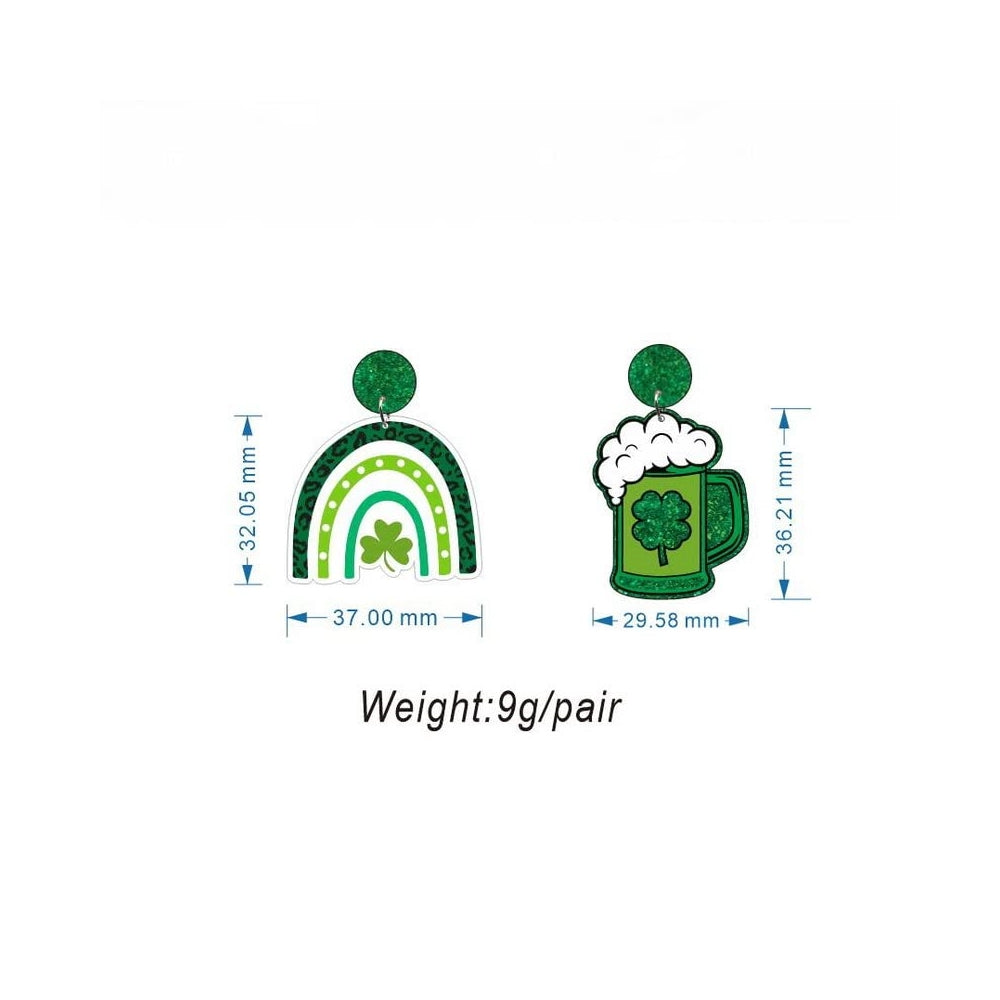 Aretes de acrílico de trébol verde de la suerte para mujeres