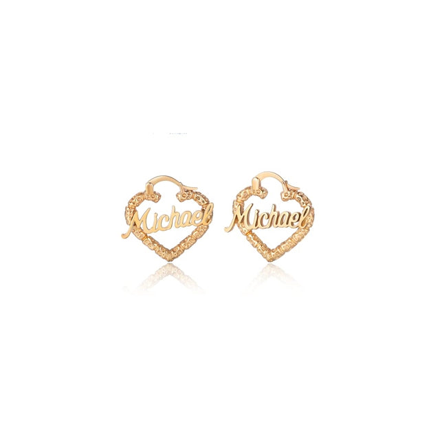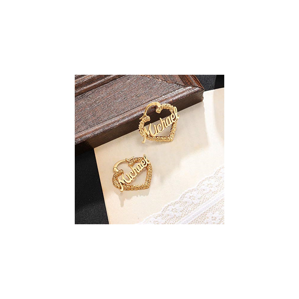 Aretes de aro de bambú personalizados con nombre para mujer