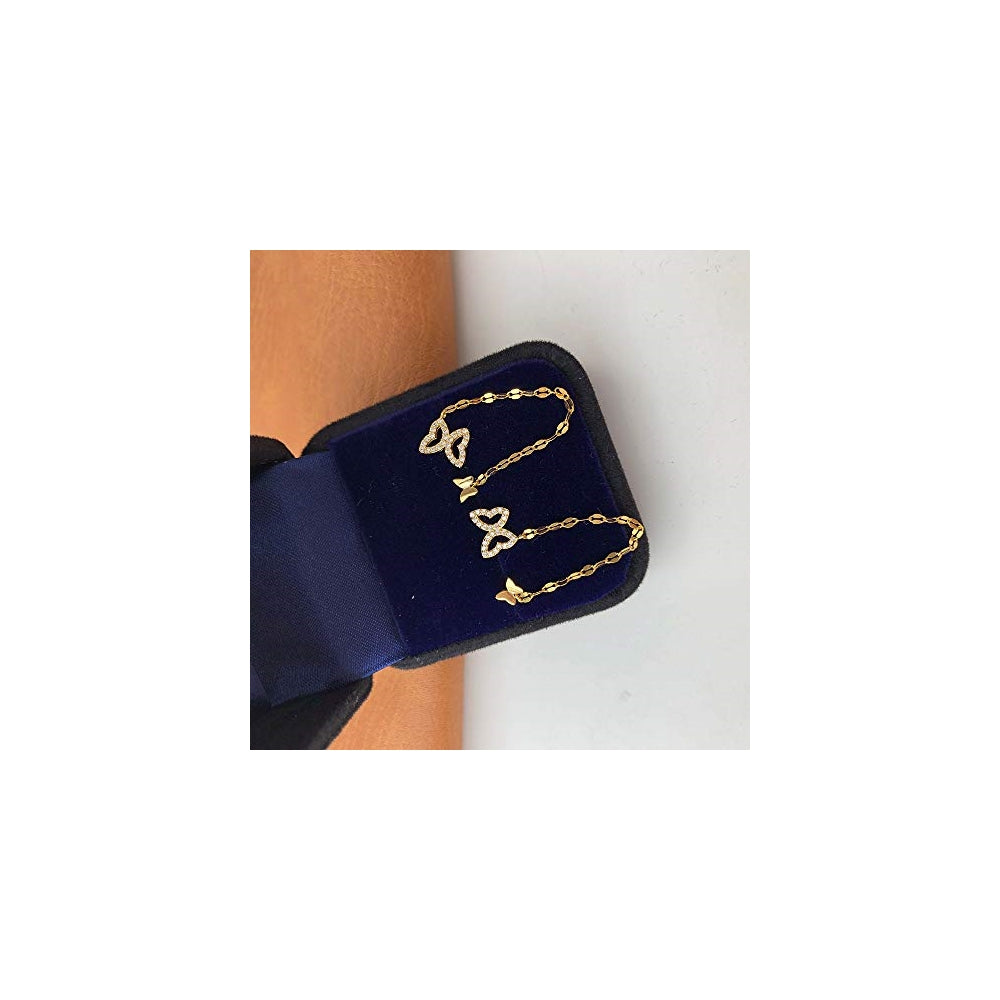 Los aretes de doble perforación con cadena de mariposa están chapados en oro amarillo grueso, lo que hace que el color dure más tiempo y sea brillante. Es un regalo perfecto para mujeres, adolescentes, esposa, novia, tía, hija, hermana, mejores amigas, suegra, abuela, abuela, abuela. Elegantes pendientes de cadena de mariposa de circonita cúbica que te hacen más encantadora. Longitud de la cadena: Material de los delicados aretes de mariposa de circonita cúbica: plata de ley, hipoalergénico, libre de plomo y níquel, chapado alto pulido y grueso, no se decolora y duradero. Los aretes de cadena de mariposa con diseño de animales vienen con una bolsa de regalo negra, podrían ser un gran regalo: regalo de cumpleaños, regalo de graduación, regalo de Navidad, regalo de San Valentín, regalo de Halloween, regalo del día de la madre, regalo de Acción de Gracias.