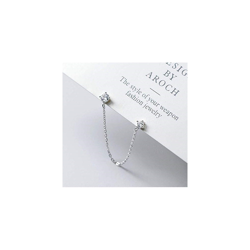 Aretes de plata de 4 puntas con circonita cúbica redonda