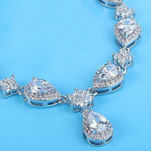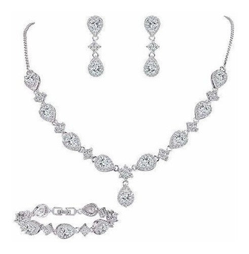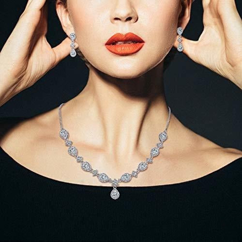 ? Material: Hecho de circonitas cúbicas ecológicas, esta joyería brilla con gracia y belleza. Y la superficie metálica es de alto acabado pulido. ? Tamaño: CZ Color: Claro; Longitud del collar: 17.3in-20in, Tamaño del colgante: 0.5in por 6.9in; Tamaño de pulsera: 7.1 pulgadas L x 0.4 pulgadas W; Tamaño de pendientes: 1.4 pulgadas de largo x 0.4 pulgadas de ancho; Peso total: 43 g ? Accesorios para ocasiones especiales: estos conjuntos de joyas para bodas son impresionantes y elegantes, adecuados para la noche de boda, compromiso, fiesta, baile, fiesta de graduación, cóctel y cita. ? Regalos ideales: venga con una bonita caja de regalo y una bolsa de joyas, es un regalo perfecto para sus amantes, madre, hija, hermana, esposa, prometida, pareja, amigos o usted mismo en el Día de Navidad-Día de la Madre-Día de San Valentín-
