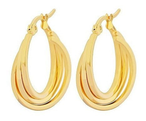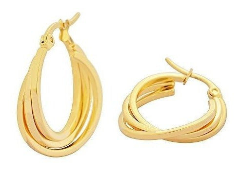 Edforce Pendientes De Aro Triple Superpuestos Chapados En