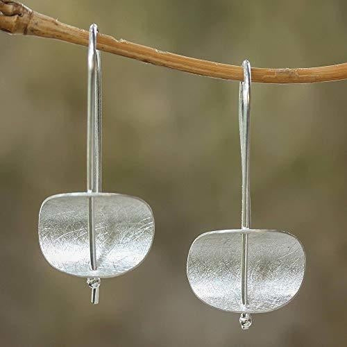 Novica Acabado Satinado Cepillado Redondo 925 Pendientes