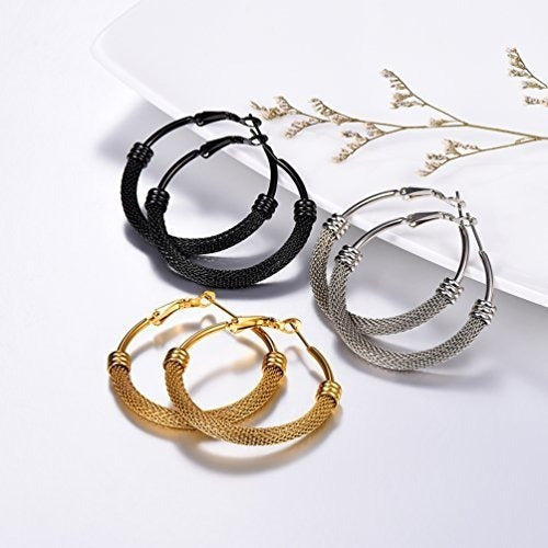 Prosteel Pendientes De Aro Negro Para Mujer Círculo