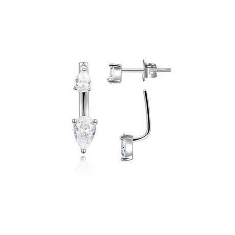 Aretes de plata forma de pera doble con circonita cúbica
