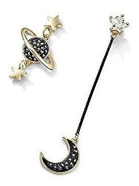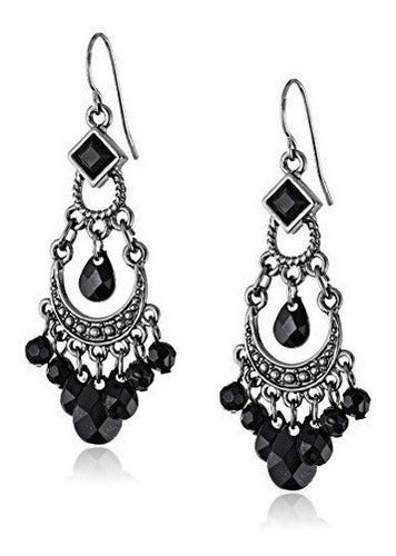 Pendientes Negros Chapados En Platino Con Oro Rosa