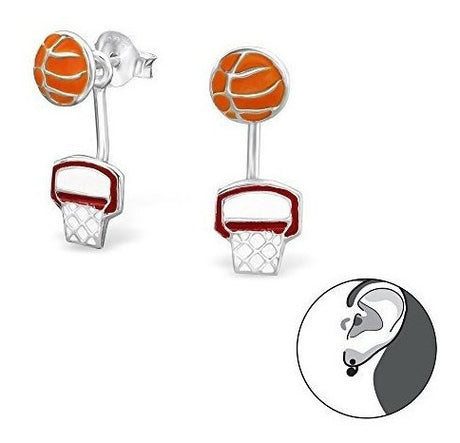 Pendientes De Plata Esterlina - Motivo Baloncesto