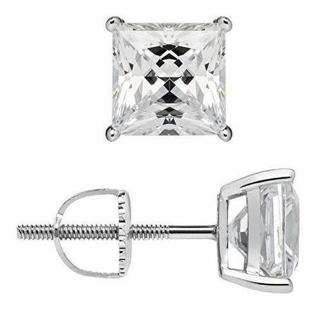 Pendientes Sólidos De Oro Blanco De 14k Princesa