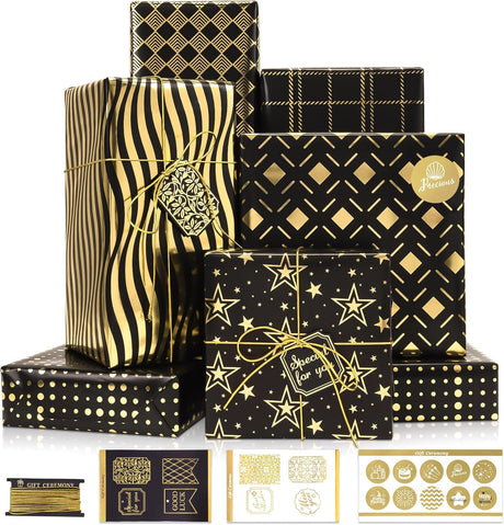 Papel de Regalo Larcenciel, 6 Hojas, Lujo con Moño y Stickers