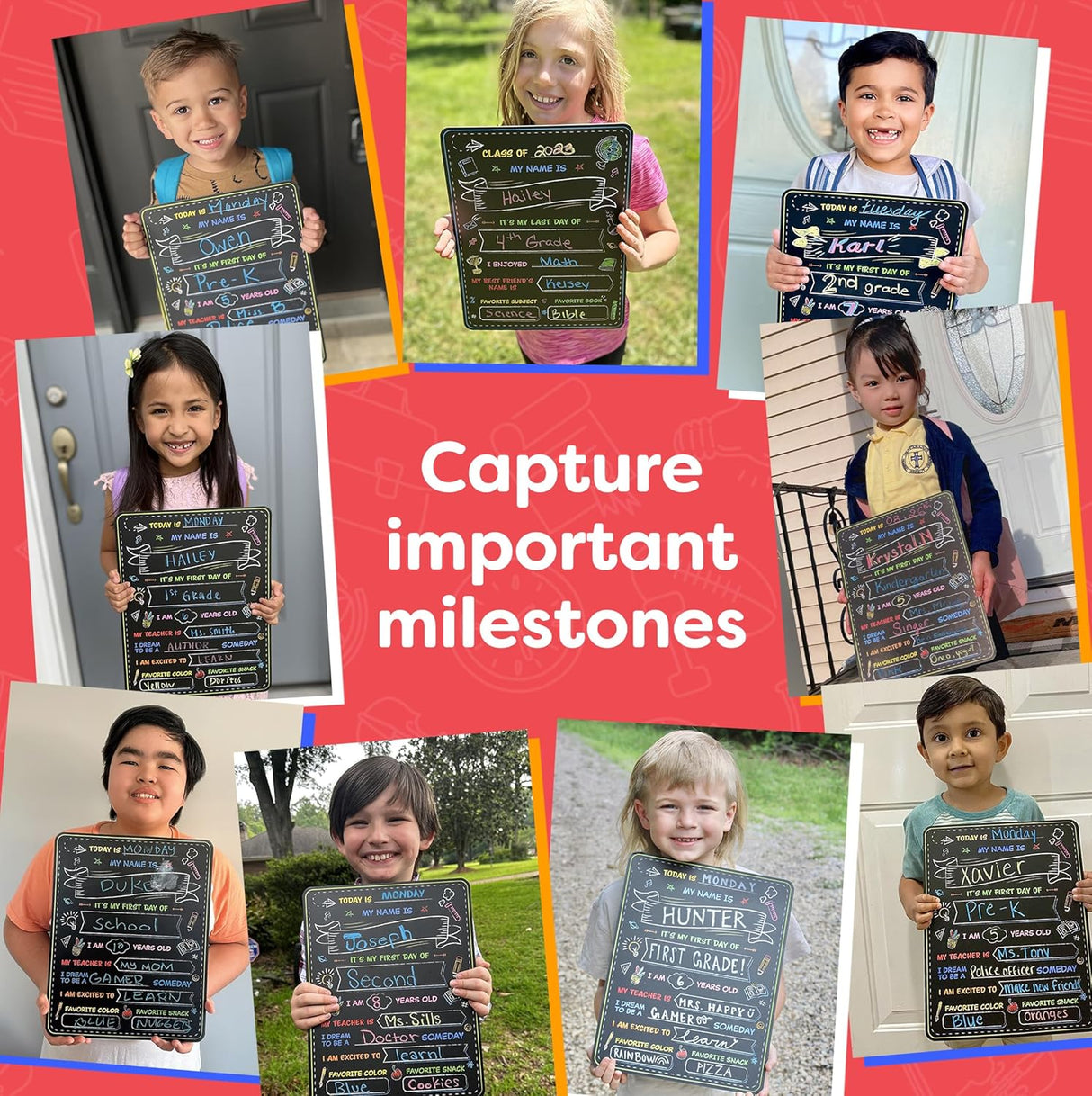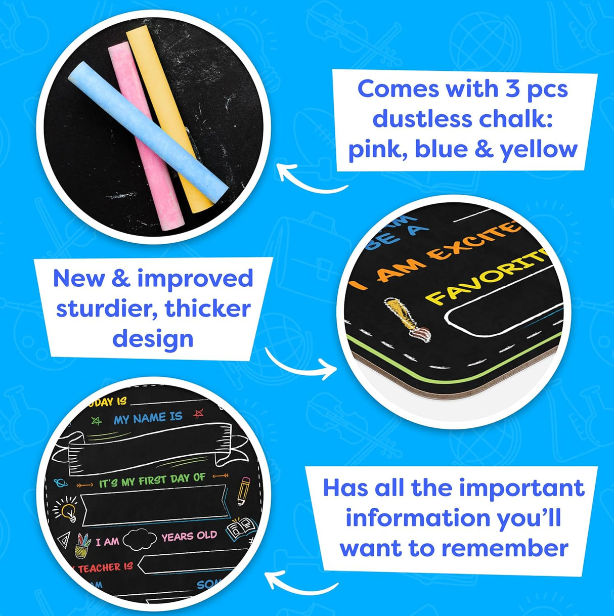 Letrero de pizarra para el primer día de escuela
