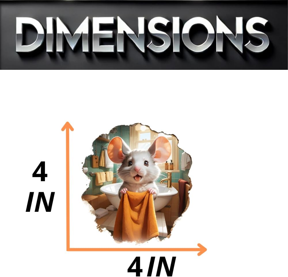 Sticker 3D Ratón en Baño, Pack de 2, Tamaño 4 pulgadas