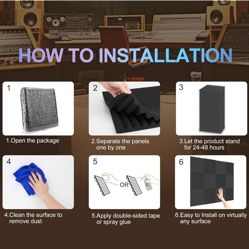 Paneles Acústicos 50 Pack, Espuma Aislante, 1 X 12 X 12