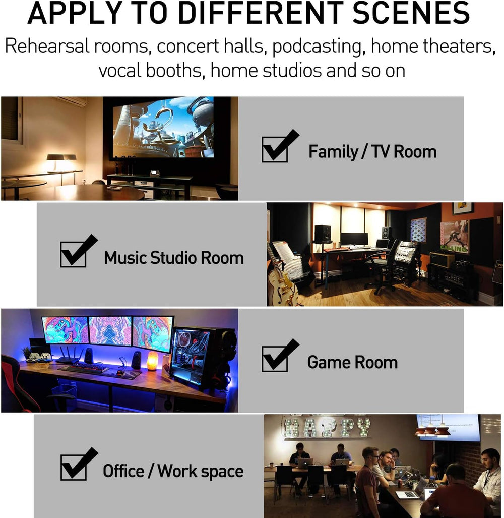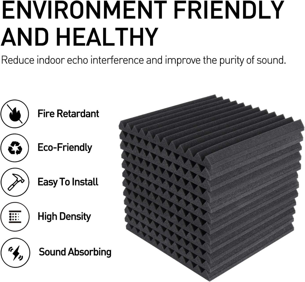 Aislamiento acústico - Paneles de espuma acústica con estructura de surcos triangulares para reducir la contaminación acúst ayudando a reducir y absorber el sonido no deseado o ecos y ruidos de áreas circundan haciendo que otros sonidos sean más claros. Accesorio mejorado - Se incluyen 270 piezas adicionales de cinta adhesiva de doble cara fuerte de forma gratu lo que le ayuda a terminar la instalación de manera más efectiva y protege sus paredes de daños. Se puede quitar fácilmente. Recuperación rápida - Si esta espuma de alta densidad no vuelve a su fo por favor sumérjala en agua durante unos minutos y séquela al aire para recuperar la forma en 24 a 48 horas. Amplias aplicaciones - Adecuado no solo para tratar el sonido en las paredes de su estudio y ofic sino también para su uso en estudios de grabac cabinas voca salas de control. Seguridad profesional - Con una fuerte resistencia al fuego y buena permeabilidad al a los paneles de espuma acústica pueden evitar que se produzcan incendios para preveni s de incendio ocultos. Ade los materiales no tóxicos no dañarán su cuerpo durante el uso diario. ? Ver más detalles del producto Aislamiento acústico: paneles de espuma acústica con estructura de ranuras triangulares para reducir la contaminación acúst ayudando a absorber y reducir el sonido no deseado o ecos y ruido de áreas circundan haciendo que otros sonidos sean más claros. Accesorio mejorado: se incluyen 270 piezas adicionales de cinta adhesiva de doble cara fuerte de forma gratu que te ayudará a terminar la instalación de manera más efectiva y protegerá tus paredes de daños. Se puede quitar fácilmente. Recuperación rápida: si esta espuma de alta densidad no vuelve a su fo remójela en agua durante unos minutos y déjela secar al aire para que recupere su forma en 24 a 48 horas. Amplias aplicaciones: adecuado no solo para tratar el sonido en las paredes de tu estudio y ofic sino también para su uso en estudios de grabac cabinas vocales y salas de control. Profesional y seguro: con una fuerte resistencia al fuego y buena permeabilidad al a los paneles de espuma acústica pueden detener la propagación del fuego para prevenir peligros ocultos. Ade los materiales no tóxicos no causarán daño a tu cuerpo durante el uso diario.