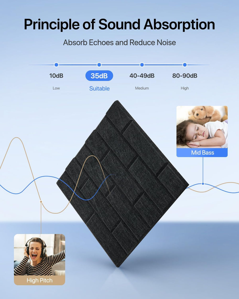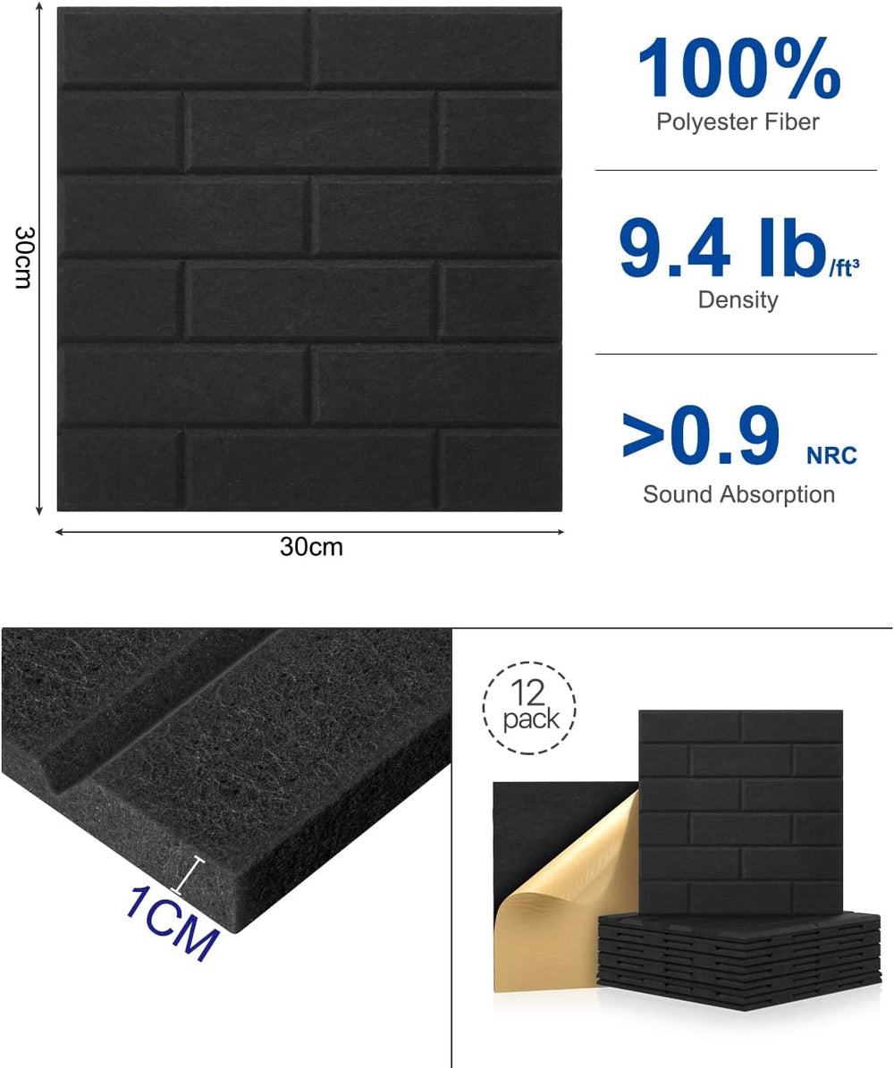 Paneles Acústicos Autoadhesivos 12 Pack 12x12 para Sonido