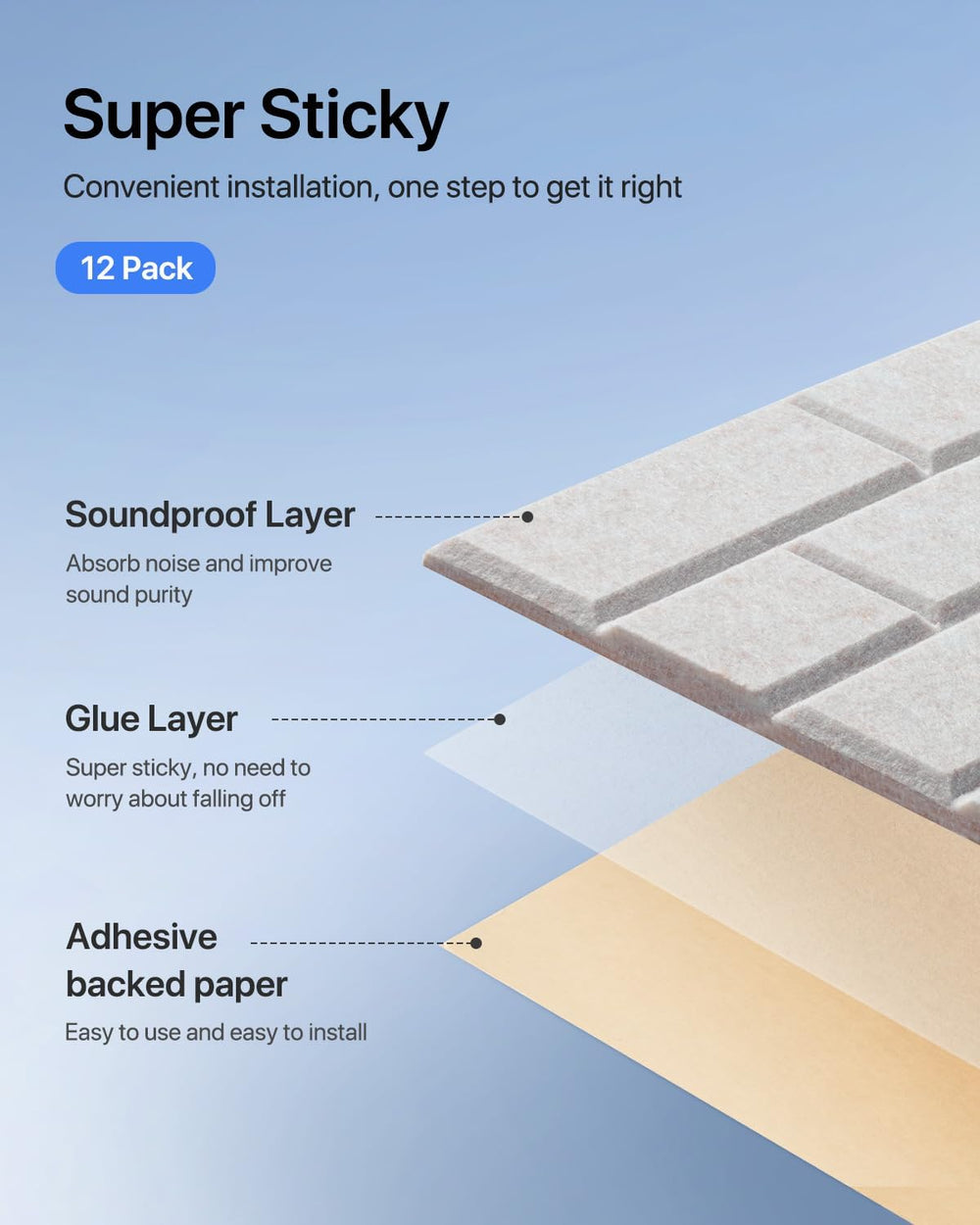 Paneles Acústicos Autoadhesivos 12 Piezas 12x12x0.4