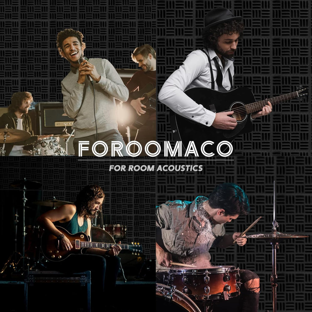 Mejora tu estudio - Para músicos e ingenieros de son un entorno de monitoreo preciso es lo más importante en el trabajo musical. La espuma absorbente de sonido es uno de los mejores equipos de estudio importan elimina las reverberaciones dañinas y las primeras reflexiones para hacer el mejor estudio en tu habitación Reducción de ruido - Nuestros paneles de espuma acústica amortiguan y difunden ondas sonoras en frecuencias altas y medias en interio minimizando la interferencia y aumentando la claridad del sonido Diseño armonioso - Nuestros paneles de amortiguación de sonido tienen un grosor de 2" y un tamaño de 12.6"x12.6" y están hechos con espuma de poliuretano para hacer que tu espacio de trabajo o sala de juegos luzca aún más profesional con un diseño de patrón no monót así o control e aislamiento de alta frecuencia Úsalo con confianza - Nuestra espuma de estudio está hecha al 100 de poliuretano y es igníf no daña no solo a adul sino también a niños y mascotas. Es adecuada para su uso en estudio de grabación profesional o domést u ofic o teatro en c cabina vo sala de práctica de batería y más Control de calidad estricto - Nos adherimos a estrictos estándares de control de calidad y producimos espuma de sonido utilizando materiales premium ? Ver más detalles del producto Información del producto Peso del artí : 2.34 libras Dimensiones del producto: 12.6 x 12.6 x 2 pulgadas 91FRDXRN Opiniones de lo s: 4.0 de 5 estrel 78 reseñas Mejor rango de ventas number 36,946 en Instrumentos Musicales (Ver los 100 mejores en Instrumentos Musicales) Fecha de disponibilidad: 31 de julio de 2021 Color: Negro Material: Espuma de poliuretano de alta densidad del producto: Para obtener información sobre l de este prod Descripción del producto: Panel acústico de espuma Foroomaco 12 Pack de 12.6"x12.6"x2" con estilo de rejilla para tratamientos acústicos en paredes de estudio en c aislamiento de sonido y absorción de espuma (negro)