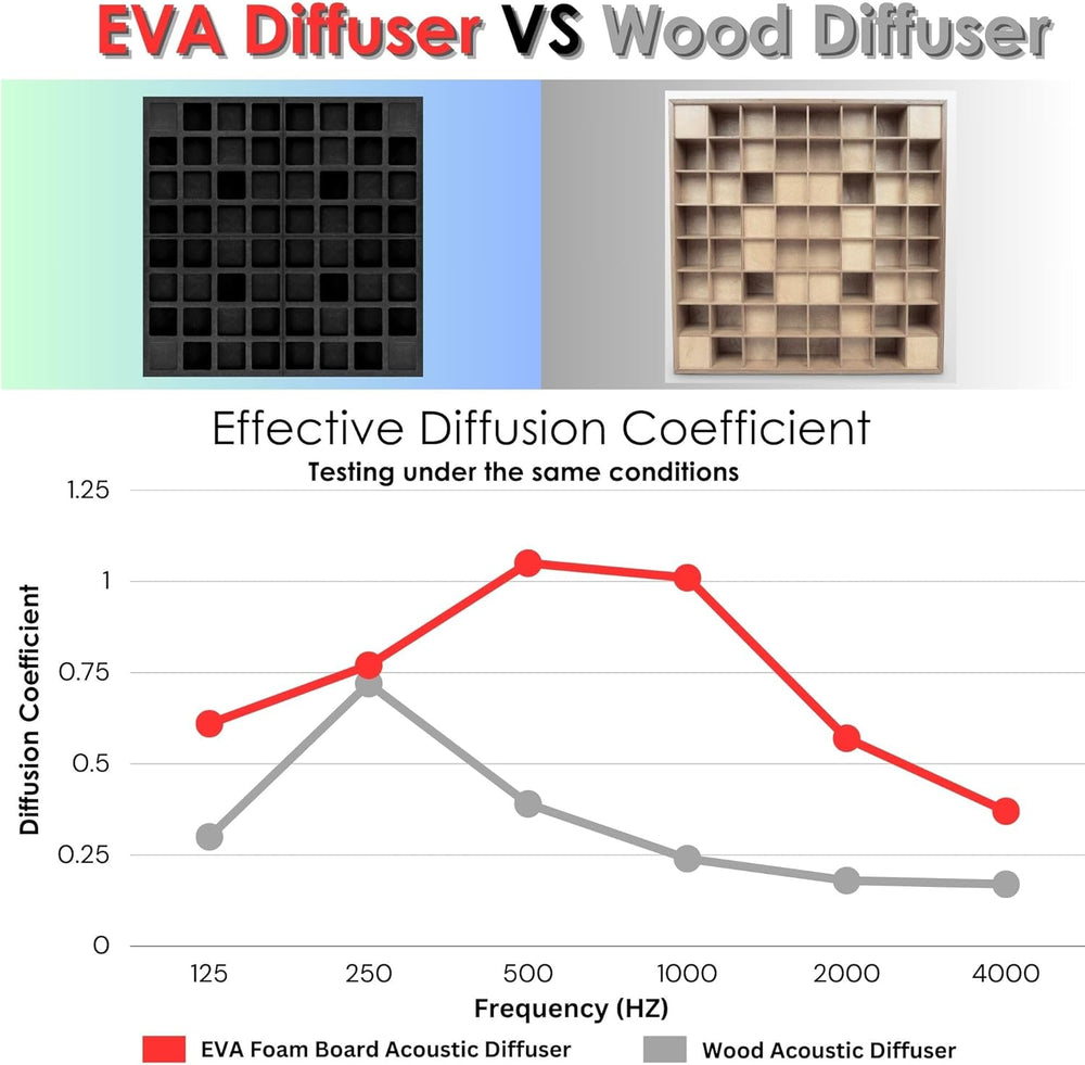 Paneles Acústicos Difusores EVA 12x12 Waffle Estilo 4pcs